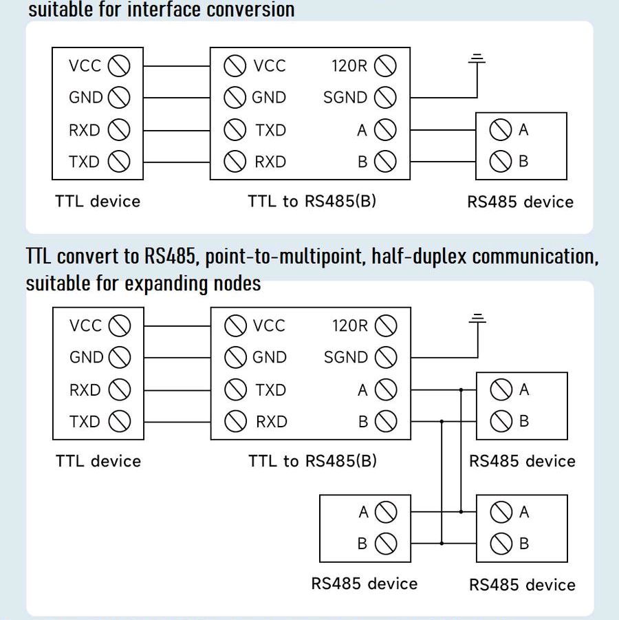 Konversi Sinyal TTL ↔ RS485: Mendukung komunikasi half-duplex yang stabil.